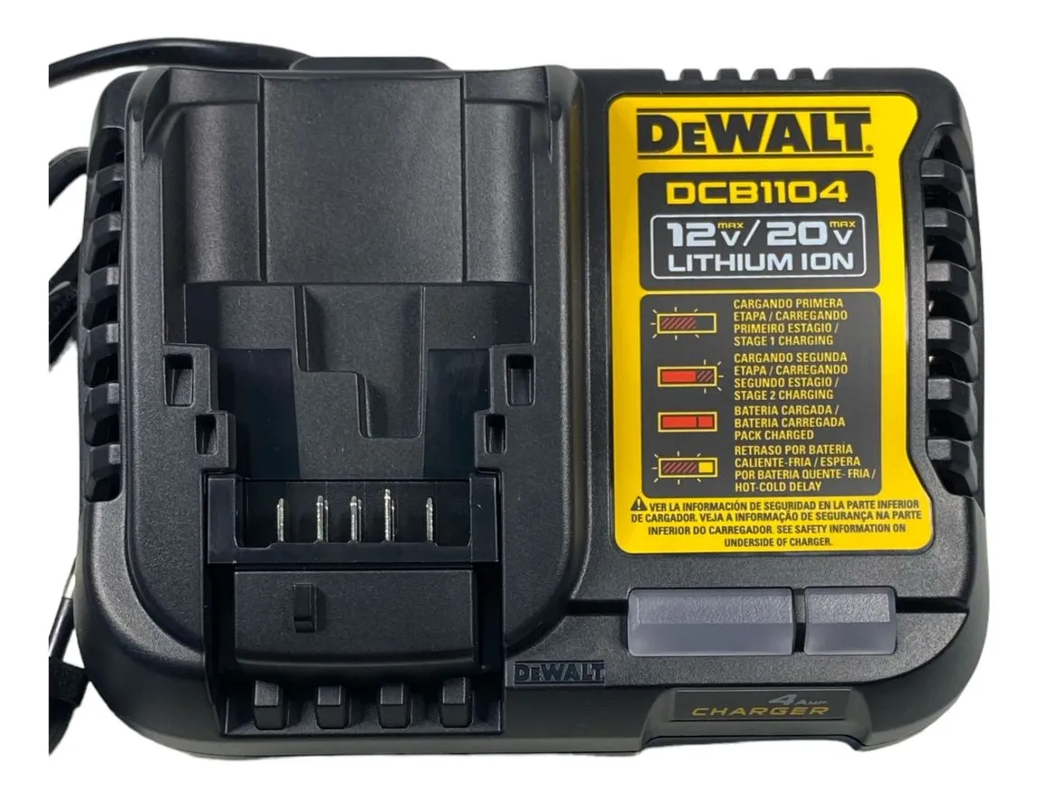 Mantenha suas baterias DEWALT 12V MAX*, DEWALT 20V MAX* e FLEXVOLT® sempre carregadas com o carregador DCB1104-BR. Com um indicador LED de estado de carga de dois estágios, você saberá quando está totalmente carregado. Além disso, o carregador DCB1104-BR 4A é 15% menor que o carregador DCB115 4A, tornando-o ainda mais portátil. E se você precisa de espaço, ele também possui capacidade de montagem na parede.