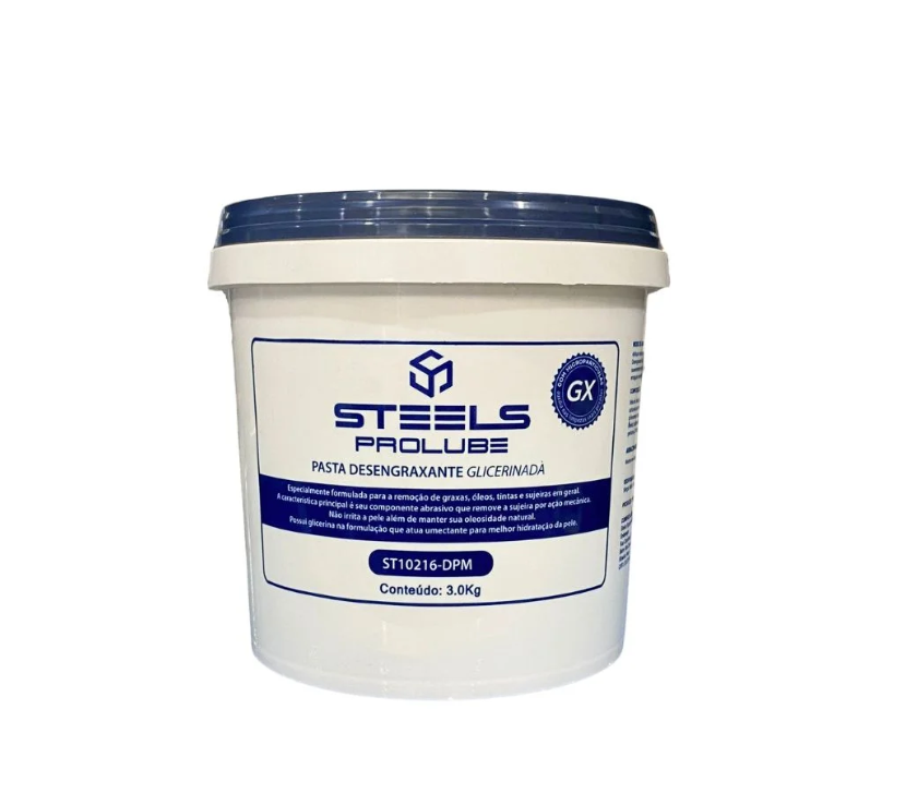 Pasta desegraxante para mãos, essencial para limpeza de óleos, graxas, tintas e sujeiras em geral.