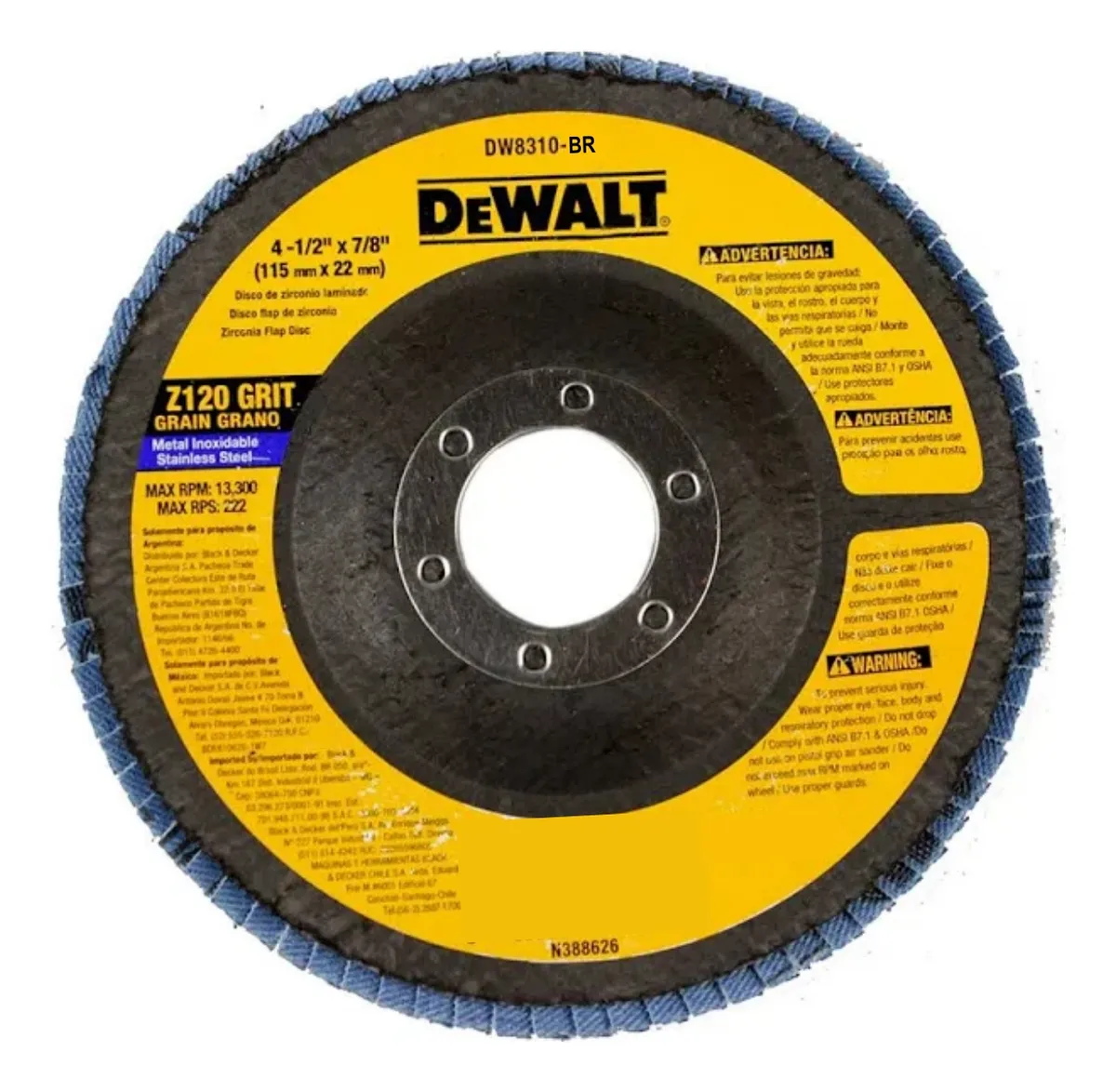 Disco Flap 4.1/2" x 7/8" Grão 120 (DW8310-BR) Dewalt