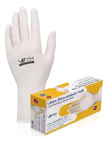 Luva de segurança confeccionada em borracha natural, com pó bioabsorvível, ambidestra e superfície lisa.