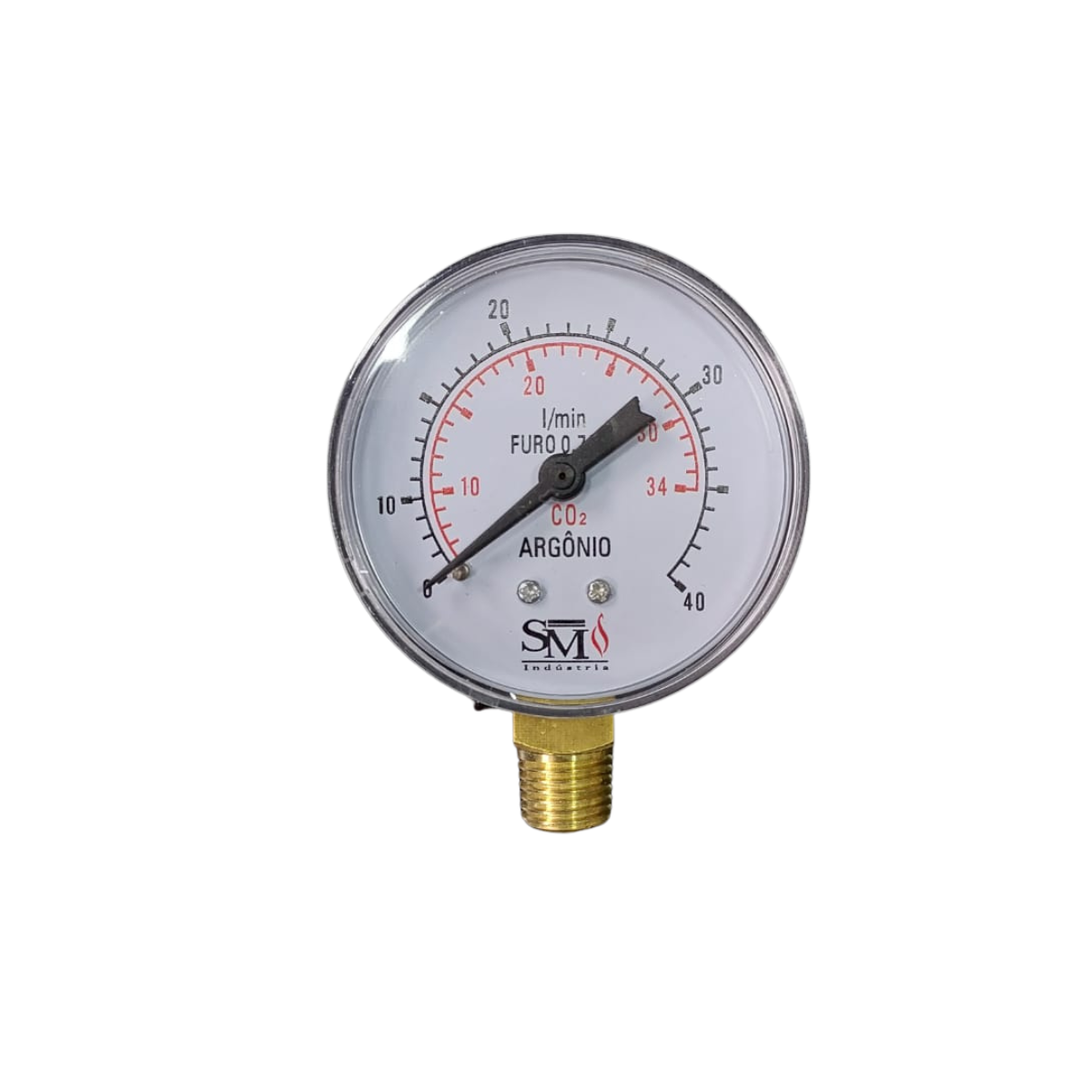 Manômetro 63mm CO2/Argônio 1/4 NPT 40 L/Min Turoteste SM