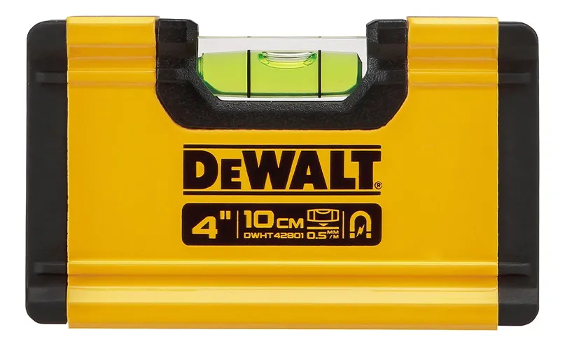 O Nível de Bolso em Alumínio 4'' com 1 Bolhas e Base Magnética DeWalt é a ferramenta ideal para quem busca precisão e praticidade. Com uma precisão de 0.5mm/m, ele é perfeito para medições verticais e horizontais, mesmo em espaços estreitos. Seu design compacto e os ímãs potentes garantem uma fixação segura em superfícies metálicas, enquanto o corpo em alumínio extrudado oferece alta durabilidade e resistência à corrosão. Além disso, a bolhaprotegida contra impactos e poeira garanteum desempenho confiável e duradouro, mesmo nas condições mais desafiadoras.