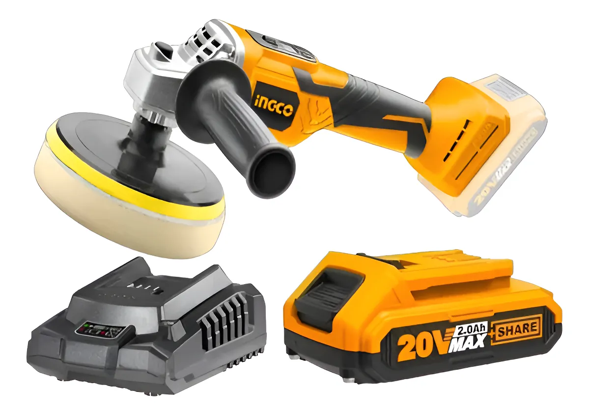 Politriz Angular sem Fio INGCO APLI2001 6" - Bateria 20V Brushless + 1bat 20v 2ah + Carregador